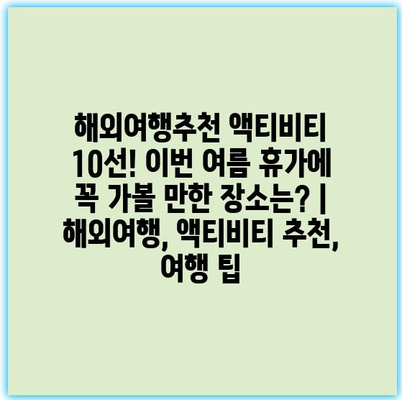 해외여행추천 액티비티 10선! 이번 여름 휴가에 꼭 가볼 만한 장소는? | 해외여행, 액티비티 추천, 여행 팁 에 대해 자주 묻는 질문 TOP 5