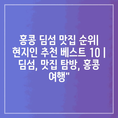 현지인들이 추천하는 딤섬 맛집 10곳을 소개하며, 여러분의 여행에 도움을 드리고자 합니다.