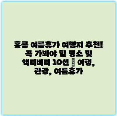 홍콩 여름휴가 여행지 추천! 꼭 가봐야 할 명소 및 액티비티 10선 | 여행, 관광, 여름휴가 에 대해 자주 묻는 질문 TOP 5