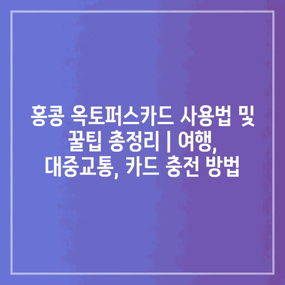 홍콩 옥토퍼스카드는 여행 중 필수 아이템입니다. 대중교통 이용 시 편리하고 경제적인 선택이죠.