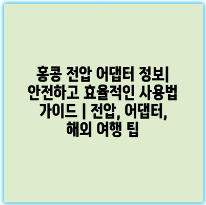 홍콩 전압 어댑터 정보| 안전하고 효율적인 사용법 가이드 | 전압, 어댑터, 해외 여행 팁