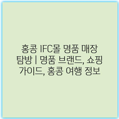 홍콩 IFC몰 명품 매장 탐방 | 명품 브랜드, 쇼핑 가이드, 홍콩 여행 정보 에 대해 자주 묻는 질문 TOP 5
