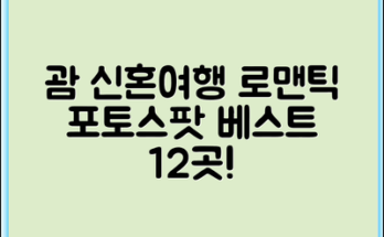 신혼여행을 계획하고 계신가요? 괌은 하얀 모래사장과 환상적인 석양으로 사랑과 로맨스를 담기에 완벽한 여행지입니다. 하지만 괌에서 어떤 포토스팟이 진짜 특별한 순간들을 만들어줄까요? 이 글에서는 괌 신혼 로맨틱 포토스팟 베스트 12를 소개하며, …