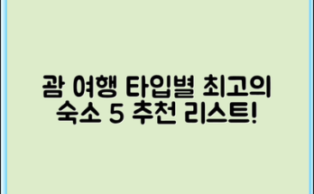 여행 준비 중에 어떤 숙소를 선택해야 할지 고민하고 계신가요? 괌은 다양한 매력을 가진 여행지로, 여행 유형에 따라 적합한 숙소가 다르답니다. 해변에서의 여유로운 휴식을 원하는 분들, 가족과 함께 즐거운 시간을 보내고 …