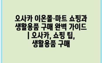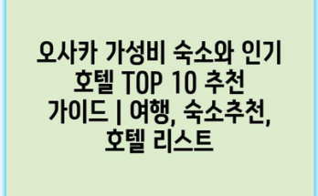 오사카 이온몰·마트 쇼핑과 생활용품 구매 완벽 가이드 | 오사카, 쇼핑 팁, 생활용품 구매 Read More오사카 가성비 숙소와 인기 호텔 TOP 10 추천 가이드 | 여행, 숙소추천, 호텔 리스트 오사카는 일본에서 맛있는 음식과 다양한 문화가 어우러진 도시로, 많은 여행자들이 찾는 곳입니다. 이번 글에서는 합리적인 가격에 …