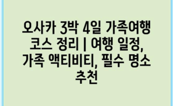 루아르 밸리 성 투어와 교통편 완전 가이드 | 성 관광, 여행 팁, 루아르 밸리 Read More오사카 3박 4일 가족여행 코스 정리 | 여행 일정, 가족 액티비티, 필수 명소 추천 오사카는 일본의 매력을 가득 품고 있는 도시로, 가족과 함께 즐기기 좋은 다양한 액티비티들이 많습니다. 첫째 날에는 …