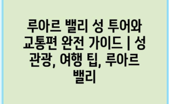 치비타 디 반뇨레조 여행과 교통편 완벽 가이드 | 관광정보, 교통수단, 여행팁 Read More루아르 밸리 성 투어와 교통편 완전 가이드 | 성 관광, 여행 팁, 루아르 밸리 프랑스의 루아르 밸리는 아름다운 성과 역사적인 유적이 가득한 지역입니다. 이 지역에서는 첼렘 성, 샤토 드 샹보르, …