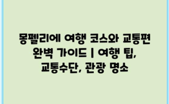 베네치아 곤돌라 탑승 요금 및 예약 팁 총정리! | 여행, 이탈리아, 관광 정보” Read More몽펠리에 여행 코스와 교통편 완벽 가이드 | 여행 팁, 교통수단, 관광 명소 프랑스의 아름다운 도시 몽펠리에는 역사와 현대가 조화를 이루는 매력적인 곳입니다. 이곳에서는 고대 건축물과 현대적인 예술이 어우러져 있어 다양한 …