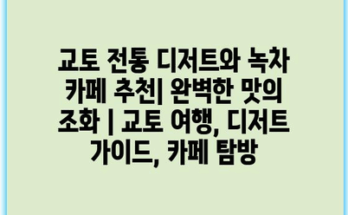 교토 백화점 쇼핑 – 다이마루·타카시마야에서 꼭 사야 할 아이템 10가지 가이드 | 교토, 쇼핑 팁, 여행 정보” Read More교토는 전통 문화와 현대적인 감각이 어우러지는 매력적인 도시입니다. 그 중에서도 전통 디저트와 함께 즐기는 녹차는 교토 여행의 백미입니다. 교토에서 가장 유명한 전통 디저트는 와가시입니다. 부드러운 팥을 사용한 다양한 종류의 와가시는 …