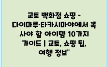 밀라노 말펜사 공항에서 시내 이동법| 최적의 교통편과 꿀팁 | 공항 셔틀, 기차, 택시” Read More교토 백화점 쇼핑 – 다이마루·타카시마야에서 꼭 사야 할 아이템 10가지 가이드 | 교토, 쇼핑 팁, 여행 정보 교토는 전통과 현대가 어우러진 매력적인 도시입니다. 특히 다이마루와 타카시마야 같은 백화점은 쇼핑을 사랑하는 …