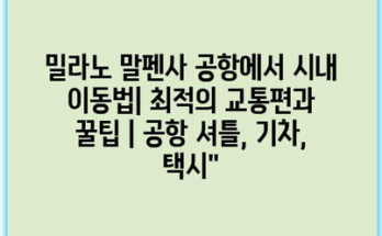베네치아 수상 호텔 예약 가이드 | 예약팁, 인기 숙소, 여행 준비 방법 Read More밀라노 말펜사 공항에서 시내 이동법| 최적의 교통편과 꿀팁 | 공항 셔틀, 기차, 택시 밀라노로 여행을 계획하고 있다면, 말펜사 공항에서 시내로 이동하는 방법이 궁금할 것입니다. 이 글에서는 편리하고 효율적인 이동 수단에 …