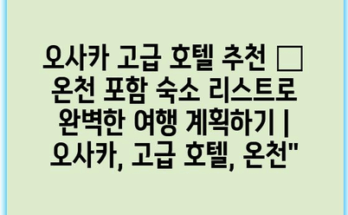 오사카 고급 호텔 추천 – 온천 포함 숙소 리스트로 완벽한 여행 계획하기 | 오사카, 고급 호텔, 온천” Read More