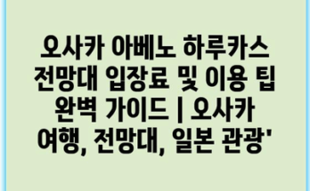 오사카 아베노 하루카스 전망대 입장료 및 이용 팁 완벽 가이드 | 오사카 여행, 전망대, 일본 관광’