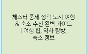체스터 중세 성곽 도시 여행 & 숙소 추천 완벽 가이드 | 여행 팁, 역사 탐방, 숙소 정보 체스터는 중세의 매력을 간직한 성곽 도시로, 역사 애호가에게는 꼭 가봐야 할 장소입니다. 이곳은 …