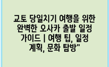 교토 당일치기 여행을 위한 완벽한 오사카 출발 일정 가이드 | 여행 팁, 일정 계획, 문화 탐방 이 글에서는 오사카에서 출발하여 교토를 탐방하는데 필요한 모든 정보를 제공합니다. 더욱이, 교토의 아름다운 문화유산과 …