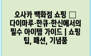이탈리아 5박 6일 자유여행 코스 추천 | 로마, 피렌체, 베네치아, 여행 일정, 팁 Read More오사카 백화점 쇼핑 – 다이마루·한큐·한신에서의 필수 아이템 가이드 | 쇼핑 팁, 패션, 기념품 오사카의 다이마루, 한큐, 한신 백화점은 일본의 쇼핑 문화를 체험할 수 있는 최고의 장소입니다. 다이마루에서는 고급 방범 카메라 …