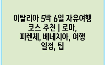 파리 오르세 미술관 전시 일정과 관람 후기 완벽 가이드 | 오르세 미술관, 전시회 정보, 관람 팁” Read More이탈리아 5박 6일 자유여행 코스 추천 | 로마, 피렌체, 베네치아, 여행 일정, 팁 이탈리아는 역사와 예술, 아름다운 풍경이 가득한 나라입니다. 이번 여행에서는 로마, 피렌체, 베네치아의 매력을 만끽할 수 있는 일정을 …