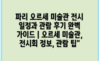 파리 오르세 미술관 전시 일정과 관람 후기 완벽 가이드 | 오르세 미술관, 전시회 정보, 관람 팁” Read More파리 오르세 미술관 전시 일정과 관람 후기 완벽 가이드 | 오르세 미술관, 전시회 정보, 관람 팁 오르세 미술관은 인상파와 후기 인상파 작품으로 유명한 곳으로, 매년 다양한 전시가 열립니다. 2023년 하반기에는 …