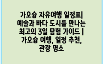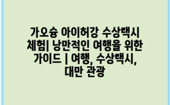 가오슝 자유여행 일정표| 예술과 바다 도시를 만나는 최고의 3일 탐험 가이드 | 가오슝 여행, 일정 추천, 관광 명소 가오슝은 대만의 매력적인 예술과 바다를 동시에 경험할 수 있는 도시입니다. 3일 동안의 …