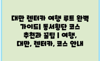 대만 렌터카 여행 루트 완벽 가이드| 동서횡단 코스 추천과 꿀팁 | 여행, 대만, 렌터카, 코스 안내 대만은 아름다운 자연과 풍부한 문화유산을 자랑하는 나라로, 렌터카를 이용한 여행은 이곳의 매력을 최대한으로 느낄 …