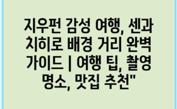 지우펀 감성 여행, 센과 치히로 배경 거리 완벽 가이드 | 여행 팁, 촬영 명소, 맛집 추천 지우펀은 아름다운 경관과 독특한 분위기로 유명한 곳입니다. 이곳은 애니메이션과 영화의 배경이 되어 많은 관광객들의 …