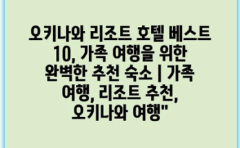 오키나와 리조트 호텔 베스트 10, 가족 여행을 위한 완벽한 추천 숙소 | 가족 여행, 리조트 추천, 오키나와 여행 오키나와는 아름다운 자연과 독특한 문화를 가진 곳으로, 가족 여행에 안성맞춤입니다. 특히 리조트 …