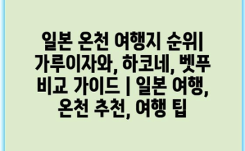 일본 온천 여행지 순위| 가루이자와, 하코네, 벳푸 비교 가이드 | 일본 여행, 온천 추천, 여행 팁 일본의 온천은 세계적으로 유명하며, 각 지역마다 독특한 매력을 가지고 있습니다. 이번 포스팅에서는 특히 가루이자와, …