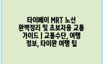 타이베이 MRT 노선 완벽정리 및 초보자용 교통 가이드입니다. 타이완의 수도인 타이베이는 MRT를 이용하면 매우 편리하게 여행할 수 있습니다. 총 5개의 주요 노선으로 구성되어 있으며, 각 노선은 다양한 관광 명소와 연결되어 …