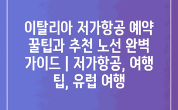 이탈리아 저가항공 예약 꿀팁과 추천 노선 완벽 가이드 이탈리아를 여행하며 저렴하게 이동하는 방법은 저가항공 이용입니다. 저가항공을 활용하면 비용을 절약할 수 있고, 다양한 도시를 쉽게 탐방할 수 있습니다. 첫 번째 팁은 …