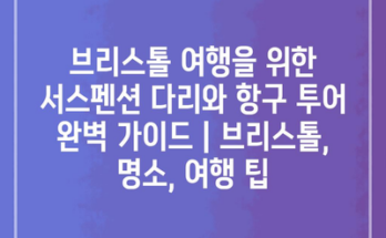 브리스톨 여행을 위한 서스펜션 다리와 항구 투어 완벽 가이드입니다. 이곳은 아름다운 경관과 함께 역사적인 명소가 많은 도시입니다. 먼저 서스펜션 다리는 이 지역의 상징적인 건축물로, 꼭 방문해야 할 장소입니다. 다리를 건너면서 …