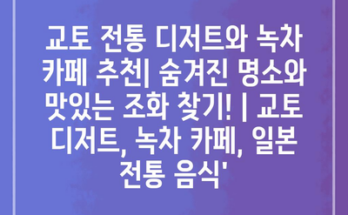 교토 전통 디저트와 녹차 카페 추천| 숨겨진 명소와 맛있는 조화 찾기! | 교토 디저트, 녹차 카페, 일본 전통 음식 교토는 일본의 전통과 현대가 어우러진 아름다운 도시입니다. 이곳에서는 전통 디저트와 녹차를 …