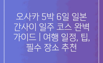 오사카 5박 6일 일본 간사이 일주 코스 완벽 가이드 | 여행 일정, 팁, 필수 장소 추천 오사카에서의 5박 6일은 다양한 문화와 맛있는 음식을 경험할 수 있는 최고의 기회입니다. 첫날, 도착 …