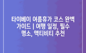 타이베이 여름휴가 코스 완벽 가이드 | 여행 일정, 필수 명소, 액티비티 추천 타이베이는 여름휴가를 즐기기에 완벽한 도시입니다. 다양한 매력으로 가득 차 있는 이곳에서 잊지 못할 추억을 만들어 보세요. 먼저, 여행 …