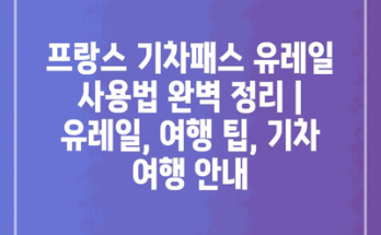 프랑스 기차패스 유레일 사용법 완벽 정리 | 유레일, 여행 팁, 기차 여행 안내 프랑스를 여행할 계획이라면 유레일 패스를 적극 고려해보세요. 유레일은 여러 나라를 쉽게 여행할 수 있게 해주는 패스입니다. 특히 …