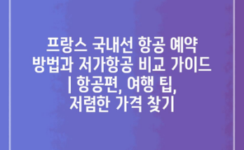 프랑스 국내선 항공 예약 방법과 저가항공 비교 가이드 | 항공편, 여행 팁, 저렴한 가격 찾기 프랑스에서의 여행을 계획 중이라면, 국내선 항공편 예약 방법을 아는 것이 중요합니다. 여행 일정을 정한 후, …