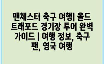 브리스톨 여행 완벽 가이드 – 서스펜션 다리와 항구 투어의 모든 것 | 여행 팁, 인기 명소, 관광 안내 Read More맨체스터 축구 여행은 전 세계 축구 팬들에게 꿈 같은 경험입니다. 특히 올드 트래포드 경기장은 맨체스터 유나이티드의 홈구장으로, 많은 이들이 꼭 방문하고 싶어하는 장소입니다. 이 투어에서는 경기장 내부를 자세히 살펴볼 수 …