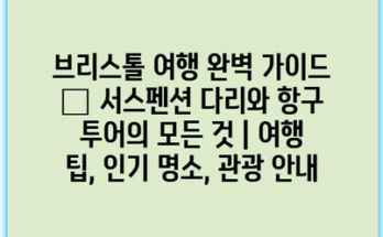 런던 템즈강 크루즈 여행 코스와 가격 완벽 가이드 | 런던 관광, 크루즈 팁, 여행 정보 Read More브리스톨 여행 완벽 가이드 – 서스펜션 다리와 항구 투어의 모든 것 | 여행 팁, 인기 명소, 관광 안내 영국 브리스톨은 매력적인 도시로, 다채로운 문화와 역사를 품고 있습니다. 이곳의 대표적인 명소인 …