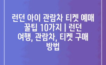 런던 아이 관람차 티켓 예매 꿀팁 10가지 | 런던 여행, 관람차, 티켓 구매 방법 런던 아이는 세계에서 가장 유명한 대관람차 중 하나입니다. 이곳에서 런던의 아름다운 전경을 한눈에 감상할 수 있습니다. …