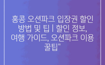 홍콩 오션파크 입장권 할인 방법 및 팁 | 할인 정보, 여행 가이드, 오션파크 이용 꿀팁” Read More