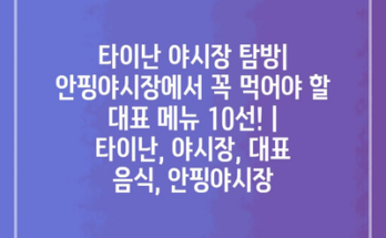 타이난 야시장 탐방| 안핑야시장에서 꼭 먹어야 할 대표 메뉴 10선! 타이난의 안핑야시장은 대만의 다채로운 길거리 음식을 경험할 수 있는 최고의 장소입니다. 시장에서 판매되는 다양한 먹거리는 여행객들의 입맛을 사로잡습니다. 특히 안핑야시장은 …