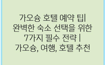 가오슝 호텔 예약 팁| 완벽한 숙소 선택을 위한 7가지 필수 전략 | 가오슝, 여행, 호텔 추천 가오슝은 매력적인 관광지로, 적절한 숙소 선택이 여행의 질을 높이는 핵심입니다. 이 글에서는 완벽한 호텔을 …