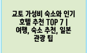 교토 가성비 숙소와 인기 호텔 추천 TOP 7 | 여행, 숙소 추천, 일본 관광 팁 교토는 일본의 전통과 현대가 조화를 이루는 도시로, 많은 여행자들에게 사랑받고 있습니다. 하지만 예산을 고려할 때, …