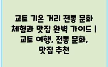 교토 기온 거리 전통 문화 체험과 맛집 완벽 가이드 | 교토 여행, 전통 문화, 맛집 추천 교토의 기온 거리는 일본의 전통 문화를 직접 체험할 수 있는 특별한 장소입니다. 이곳에서는 게이샤와 …