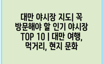 대만 야시장 지도| 꼭 방문해야 할 인기 야시장 TOP 10 | 대만 여행, 먹거리, 현지 문화 대만의 야시장은 단순한 쇼핑 공간을 넘어, 현지 문화를 체험할 수 있는 최고의 장소입니다. 각종 …