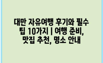 대만 자유여행 후기와 필수 팁 10가지 | 여행 준비, 맛집 추천, 명소 안내에 대해 공유하고자 합니다. 이번 여행에서는 대만의 아름다운 풍경과 맛있는 음식을 만끽할 수 있었습니다. 대만은 그리 먼 곳이 …
