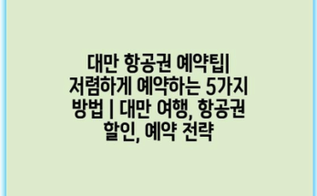 대만 항공권 예약팁| 저렴하게 예약하는 5가지 방법 | 대만 여행, 항공권 할인, 예약 전략 대만의 아름다움을 경험하고 싶다면, 항공권을 저렴하게 예약하는 것이 중요합니다. 여행 예산을 절약할 수 있는 5가지 팁을 …