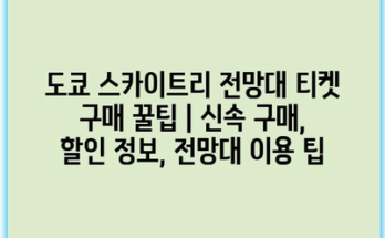 도쿄 스카이트리 전망대 티켓 구매 꿀팁 | 신속 구매, 할인 정보, 전망대 이용 팁 도쿄 스카이트리는 일본의 대표적인 관광 명소 중 하나입니다. 하지만 많은 관광객이 몰리는 시간대를 피하기 위해서는 티켓 …