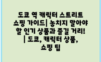 도쿄 역 캐릭터 스트리트 쇼핑 가이드| 놓치지 말아야 할 인기 상품과 즐길 거리! 도쿄의 캐릭터 스트리트는 애니메이션과 만화 팬들에게 꿈의 장소입니다. 이곳에서는 다양한 캐릭터 상품을 만나볼 수 있어 많은 사람들의 …