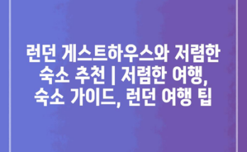런던 게스트하우스와 저렴한 숙소 추천 | 저렴한 여행, 숙소 가이드, 런던 여행 팁 런던은 세계적인 도시이지만, 여행 비용이 부담스러울 수 있습니다. 그렇다면 저렴한 숙소를 찾는 것이 중요합니다. 런던의 게스트하우스는 친숙한 …