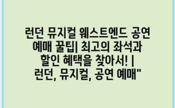 런던 뮤지컬 웨스트엔드 공연 예매 꿀팁| 최고의 좌석과 할인 혜택을 찾아서! | 런던, 뮤지컬, 공연 예매” Read More